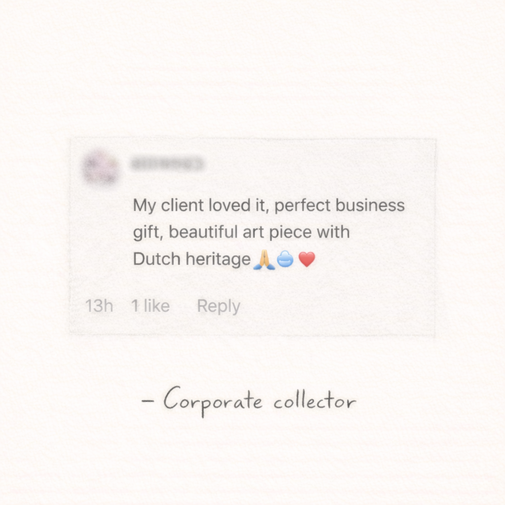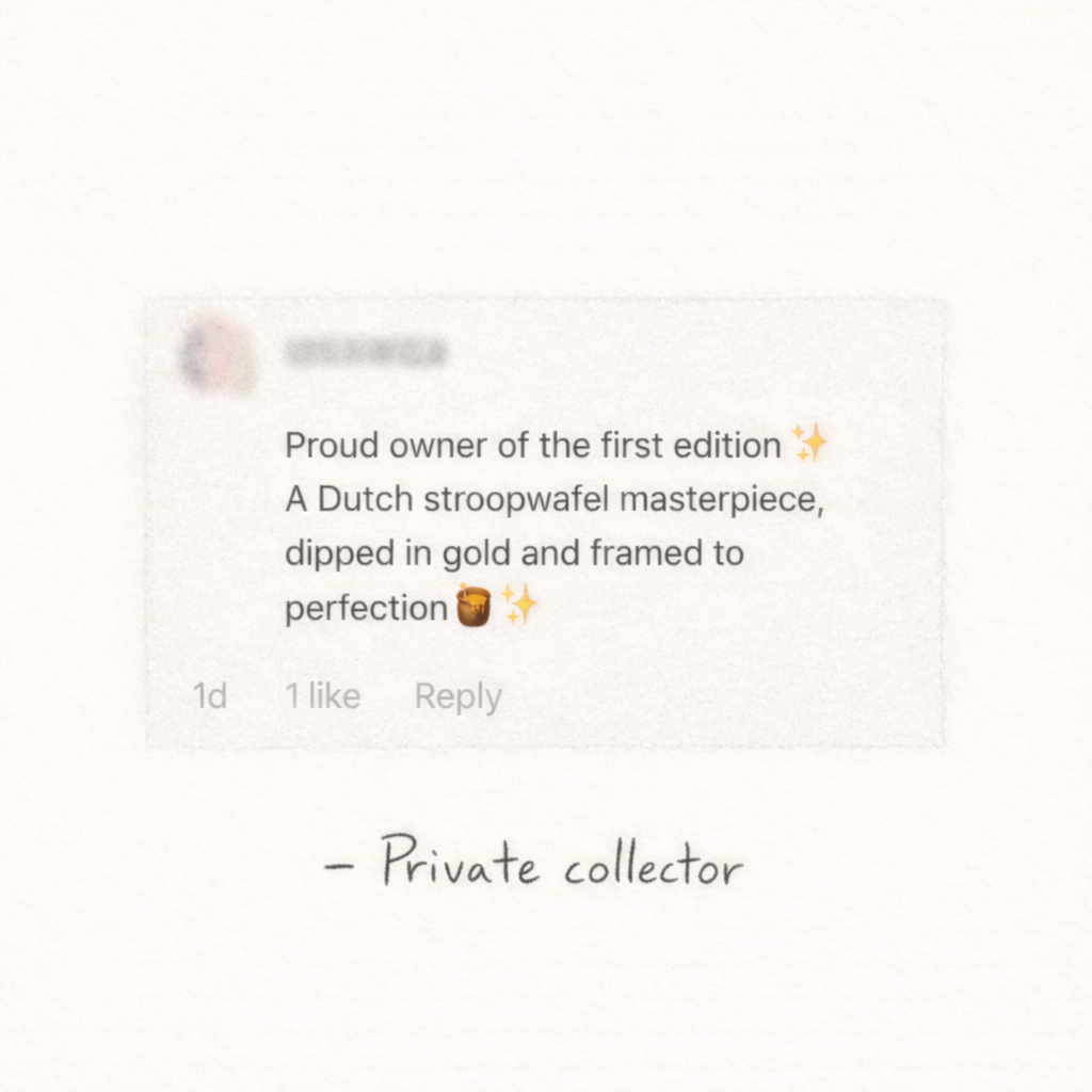 Handcrafted on the canals of Amsterdam, this 𝑆𝑡𝑟𝑜𝑜𝑝𝑤𝑎𝑓𝑒𝑙 𝐴𝑟𝑡𝑤𝑜𝑟𝑘 from a limited collection transforms a Dutch icon into a refined art object. Each piece features an authentic Dutch caramel waffle, hand-gilded with 23-karat gold leaf and presented as a framed artwork. Rooted in tradition, deliberately modern, it exists as something far more than just a cookie. Created as a collectible, a distinctive gift, or a considered statement piece.